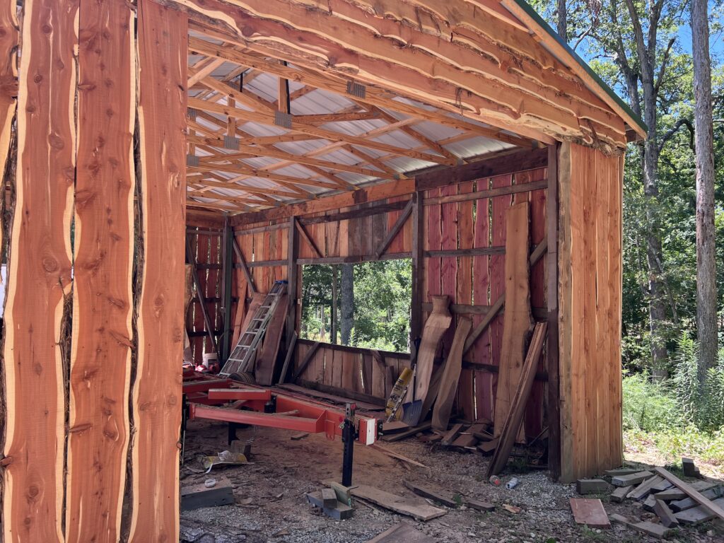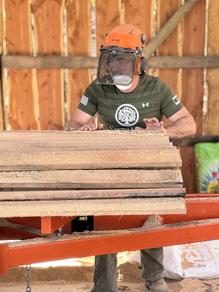 As part of Missouri’s Timber Stand Improvement program, the state requires the removal of invasive trees like cedar (juniper), as well as certain native species like maple, which can become invasive without fire, and ironwood. To make the most of these downed trees, CantorLand invested in a Wood-Mizer LT40 sawmill. This high-quality mill has been used to produce lumber for a variety of projects, including a large barn, the sawmill shed, parts of a treehouse, a 15-foot solid walnut table at Cantor Injury Law, posts and lumber for a future bridge at CantorLand Lake, fencing, and much more.